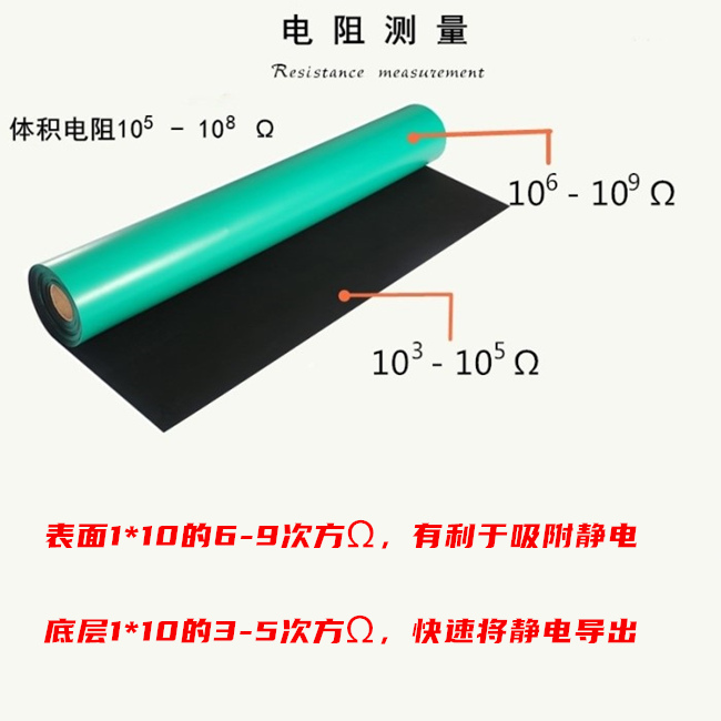 防靜電臺(tái)墊主要用抗(導(dǎo))靜電材料和耗散靜電材料合成橡膠等制做而成。表面層為約 0 5mm 厚的耗散靜電層,底層為約 1 5mm 厚的導(dǎo)電層。